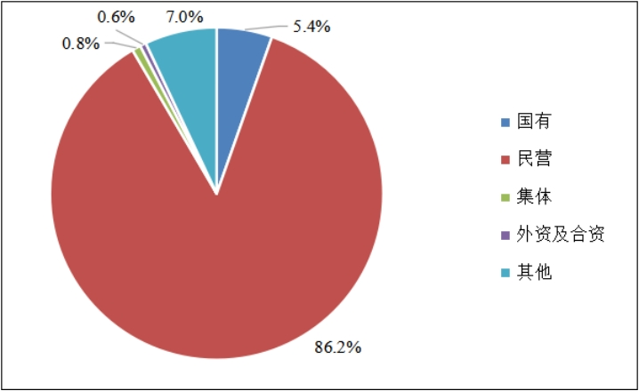 被调查的中小微物流企业主要是民营企业。调查数据显示,民营性质中小微企业占比高达86.2%,国有性质企业次之,占比为5.4%,集体性质和外资及合资性质企业占比较少,合计为1.4%。