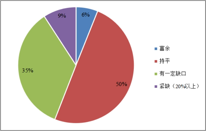 中小微企业基层用工与上年相比总体持平,有一定缺口。调查数据显示,有一半的企业反映与上年相比基层员工(司机、搬运工等)用工情况基本保持稳定,超过三分之一的企业反映用工情况有一定的缺口,还有不到10%的企业表示较为紧缺。反映有一定缺口的企业主要分布在公路货运、综合物流、仓储业务领域。