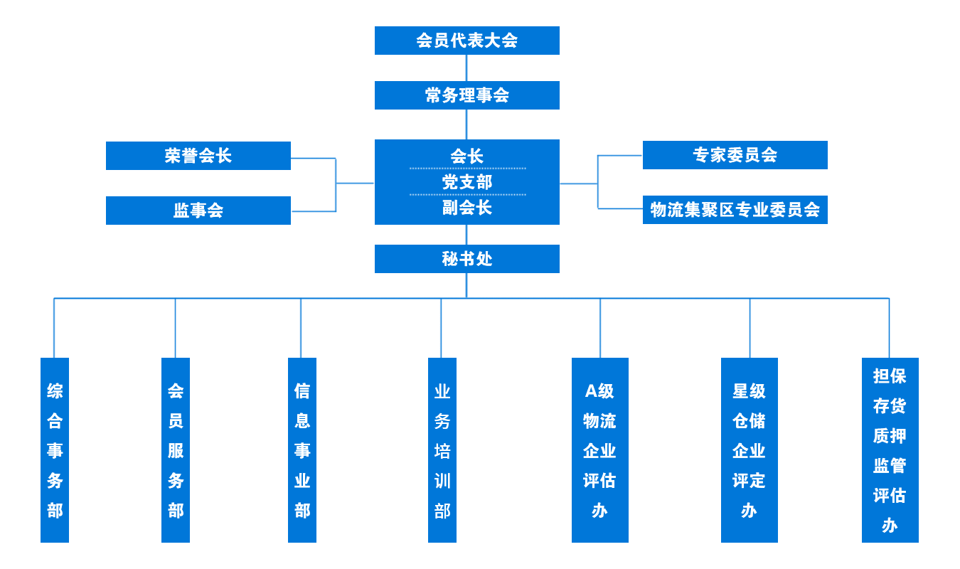 按照省政府冀政〔2005〕1号文件精神和省民政厅社会组织管理有关规定,根据《米优最新版本章程》规定,为加强党对协会工作领导,充分发挥协会的职能作用,确保协会各项工作有序进行,协会常设办事机构秘书处设党支部,下设综合事务部、信息事业部、会员服务部、财务部、A级物流企业评估办公室、星级仓储企业评定办公室、担保存货 质押监管评估办公室。
